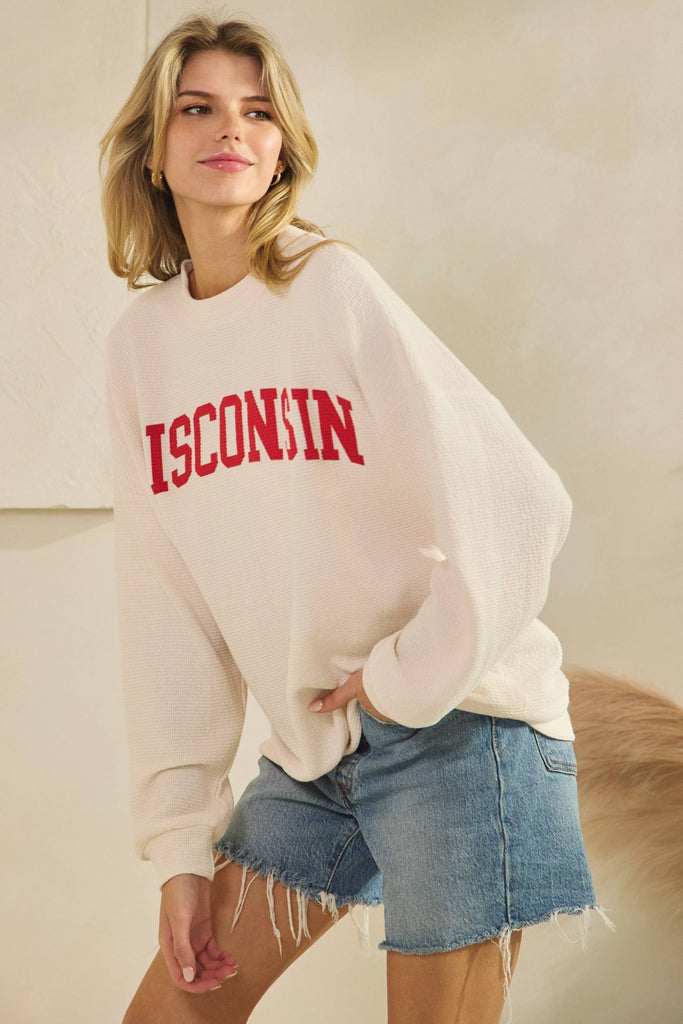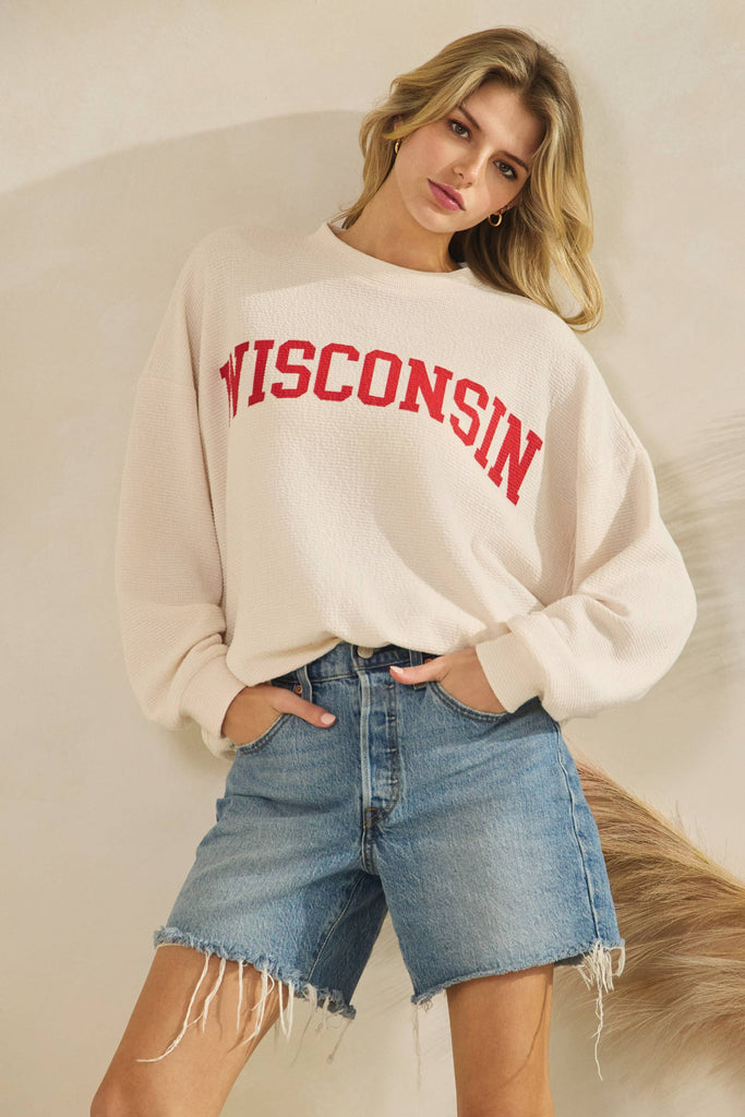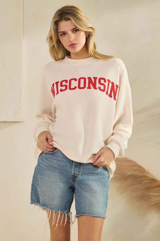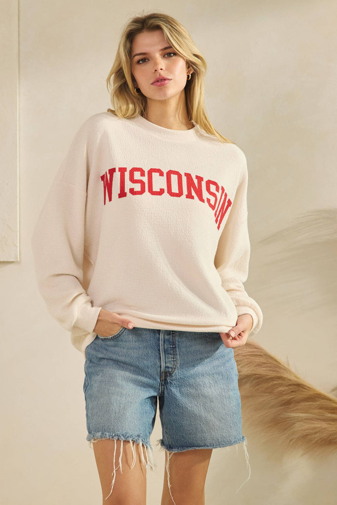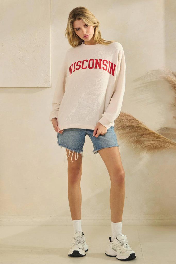 WISCONSIN CLOUDY KNIT LONG SLEEVE GRAPHIC TOP