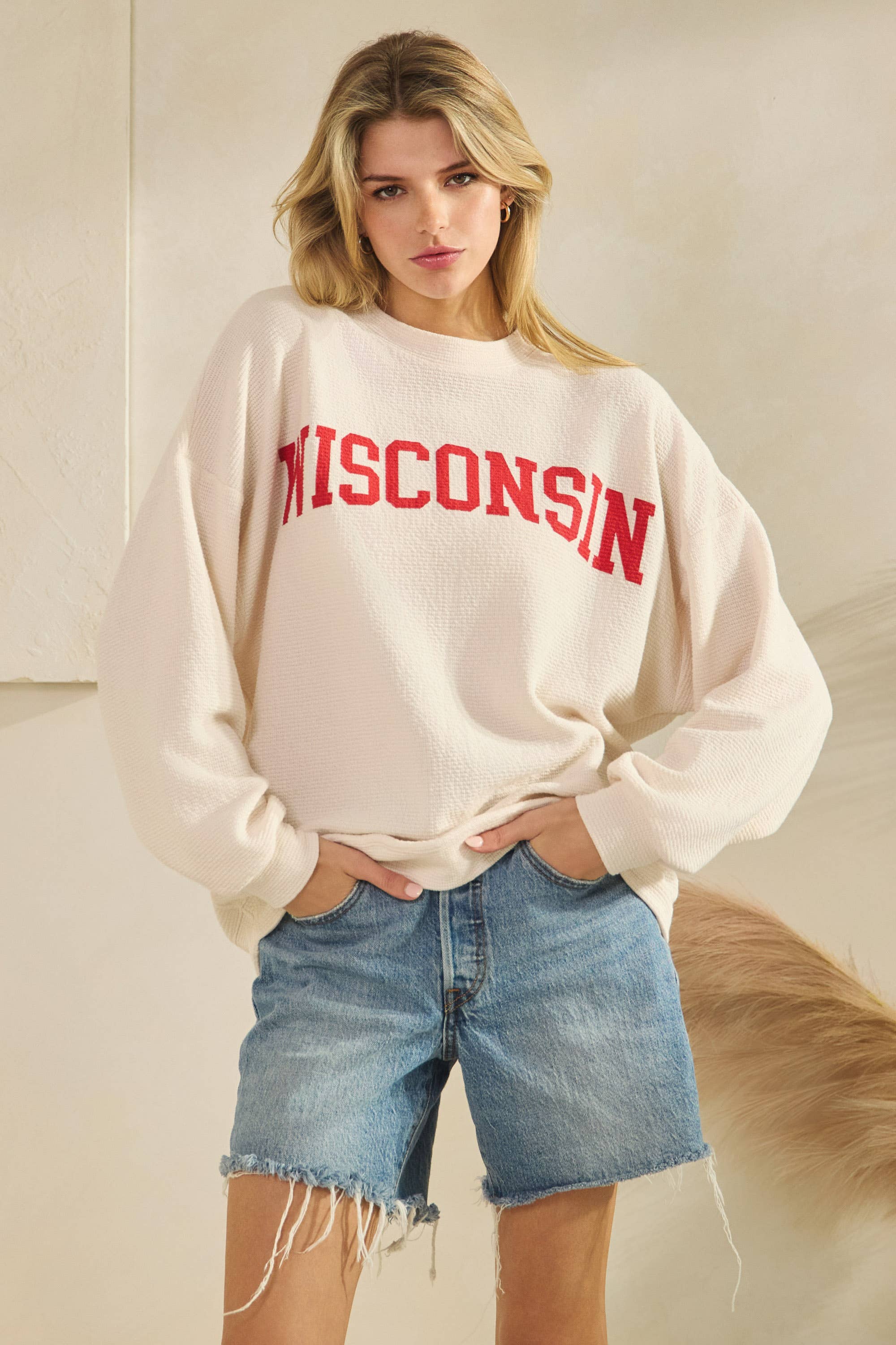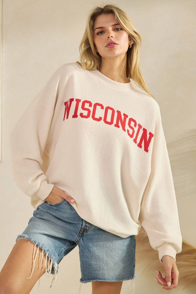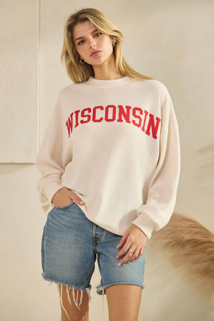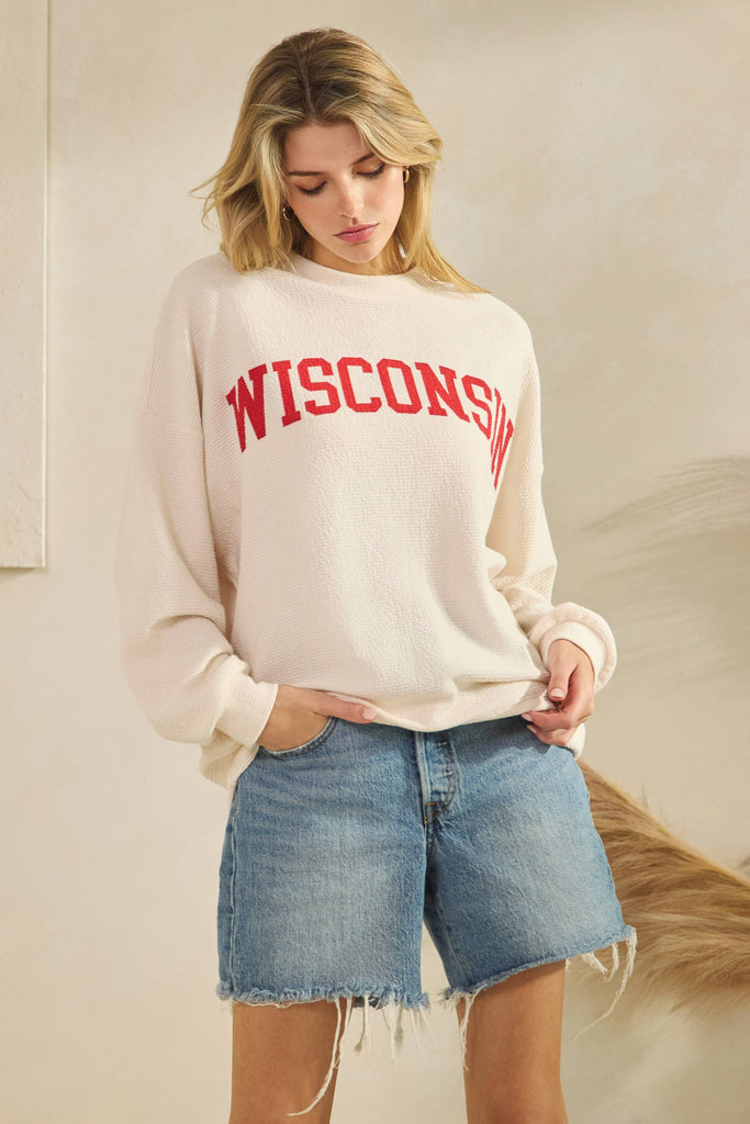 WISCONSIN CLOUDY KNIT LONG SLEEVE GRAPHIC TOP